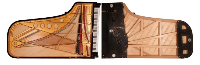 During the Bayreuth Festival 2021 we had the opportunity to provide our last E-272 together with a new "E" model from our rental fleet for the "Carmina Burana" by Carl Orff, the comparison is shown in the photos: the bending block was lengthened in the rear area and at the same time a little narrower in the bass section (in the area of the "suspensoin", which was already before incorporated into the rim). All other parameters have remained the same, especially the particularly repetitive action, the transparent tone with its richness of colors and the delicate polyphony.